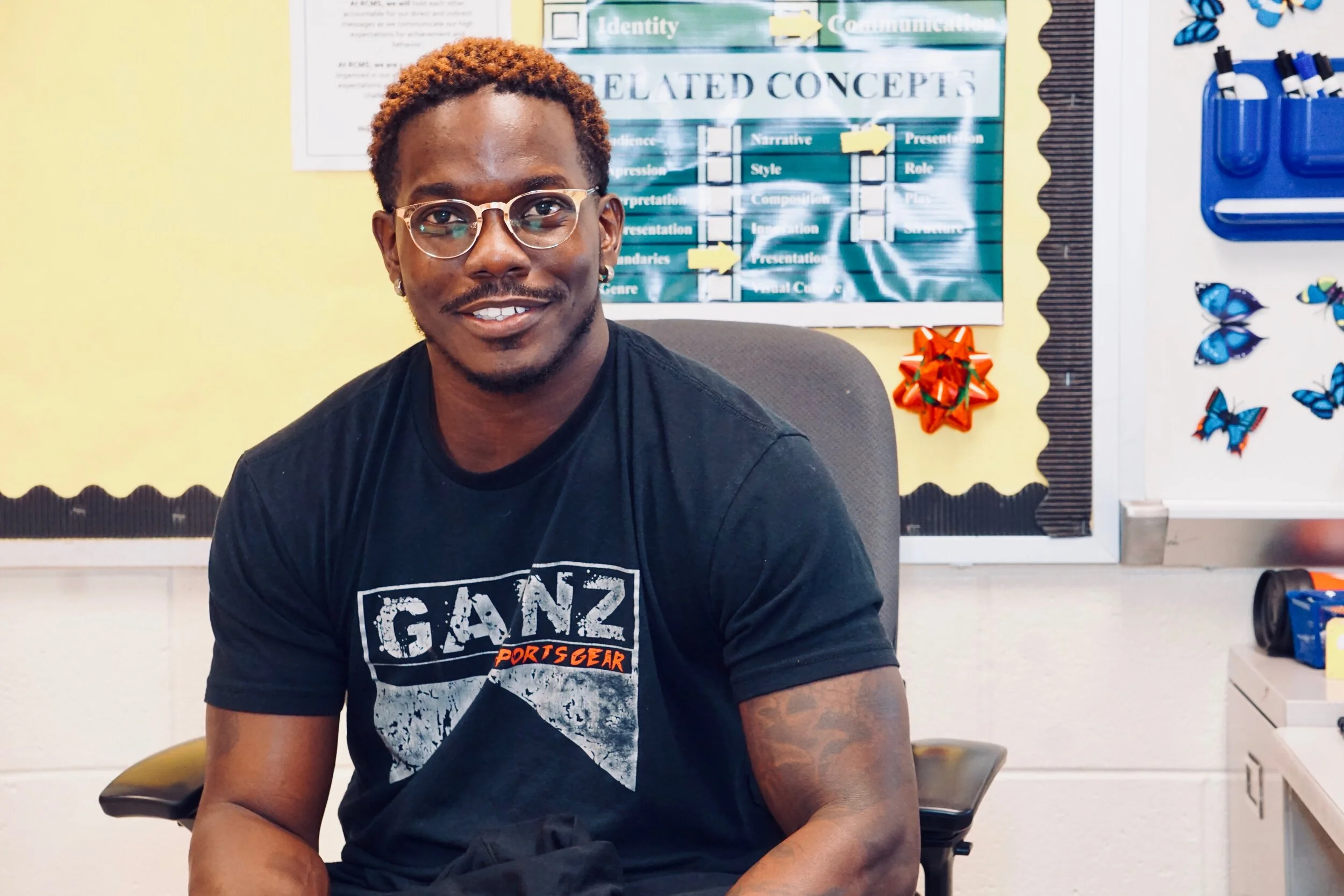 Germantown, MD (September, 21, 2019), Mr. Ovando Brown, Instructor at Roberto Clemente Middle School, taking a brief break during mentorship.